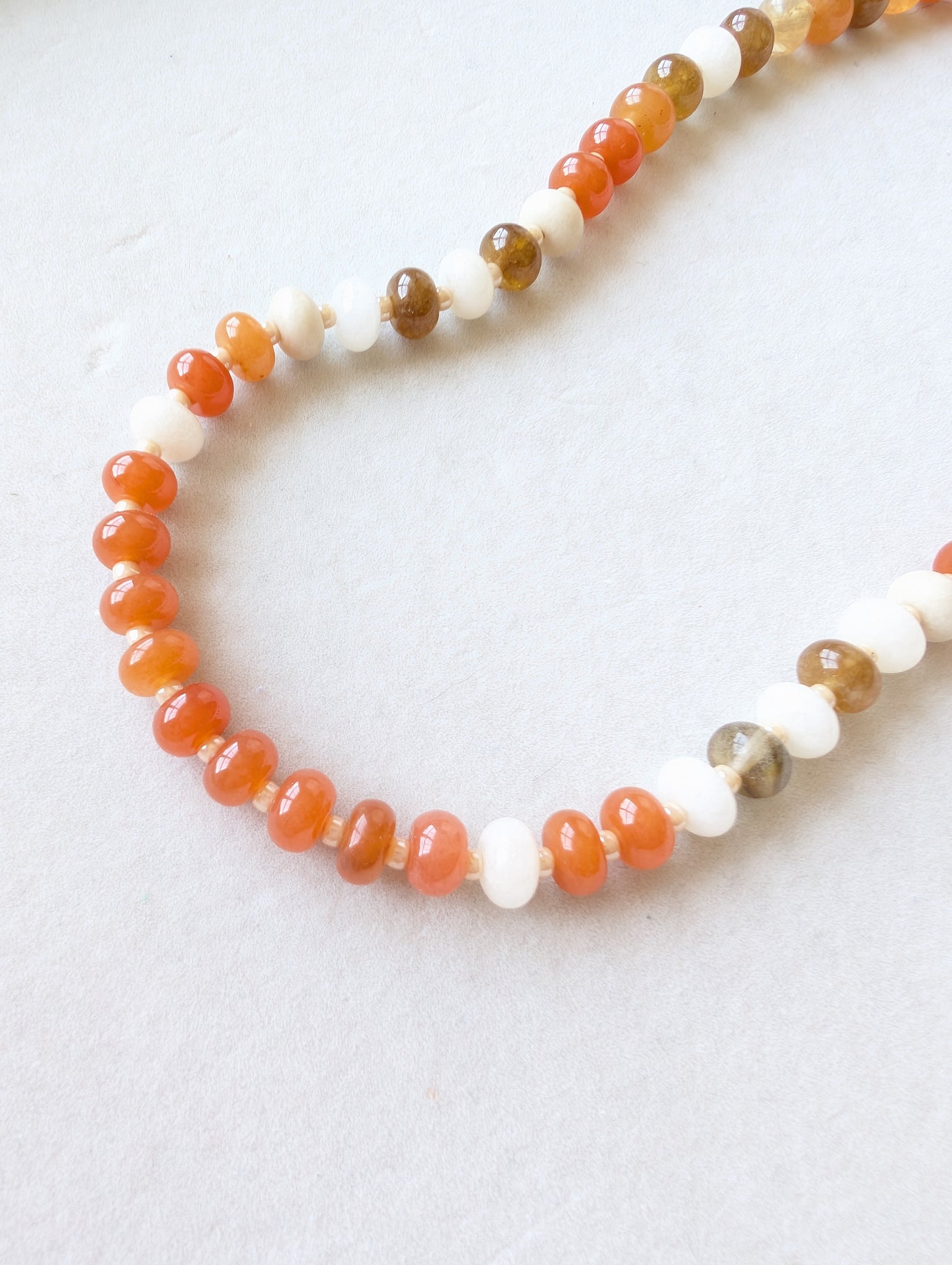 A warm mix of golden, ivory, and amber gemstone beads that capture the glow of early morning light. Effortlessly chic and easy to style, this gold-filled beaded necklace adds a soft pop of color to any look.