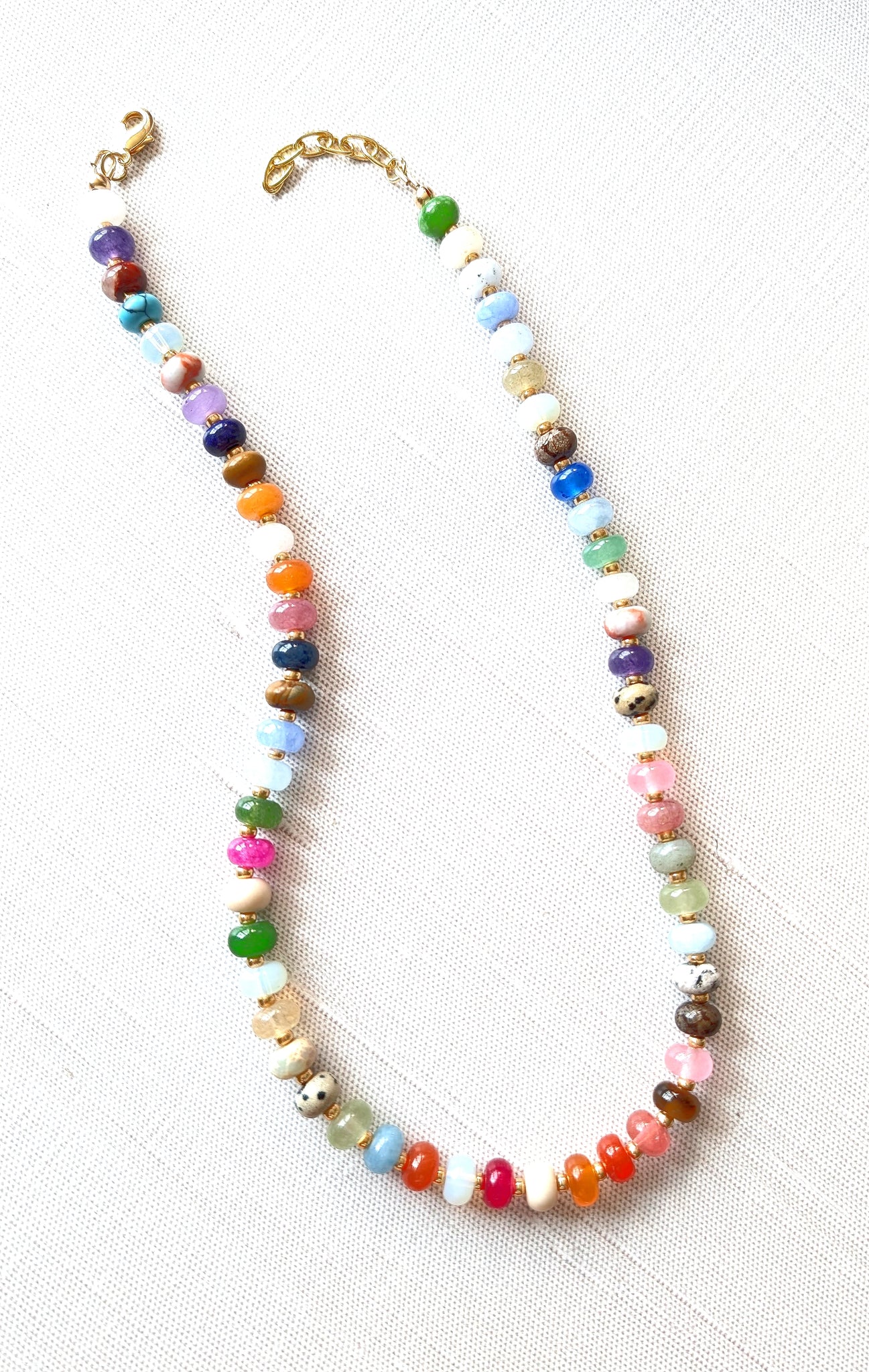 Bring a little joy to your everyday look with this playful Color Story Necklace. Hand-strung with 15" of vibrant multi-color rondelle beads, it’s accented with metallic gold spacers that add just the right touch of shine. Finished with a 2" extender and gold-filled hardware, this piece is made to mix, match, and layer effortlessly with your favorite stacks.