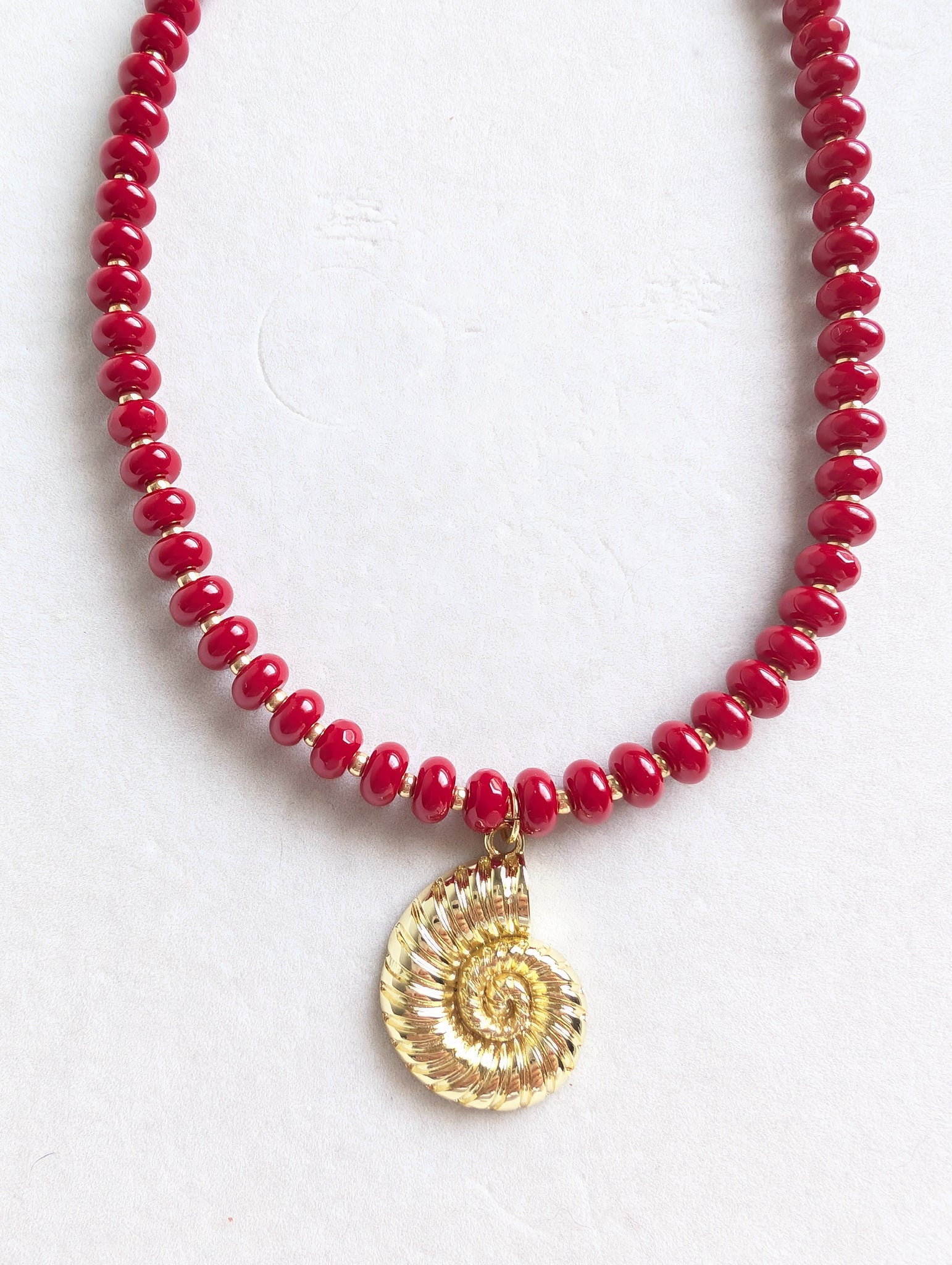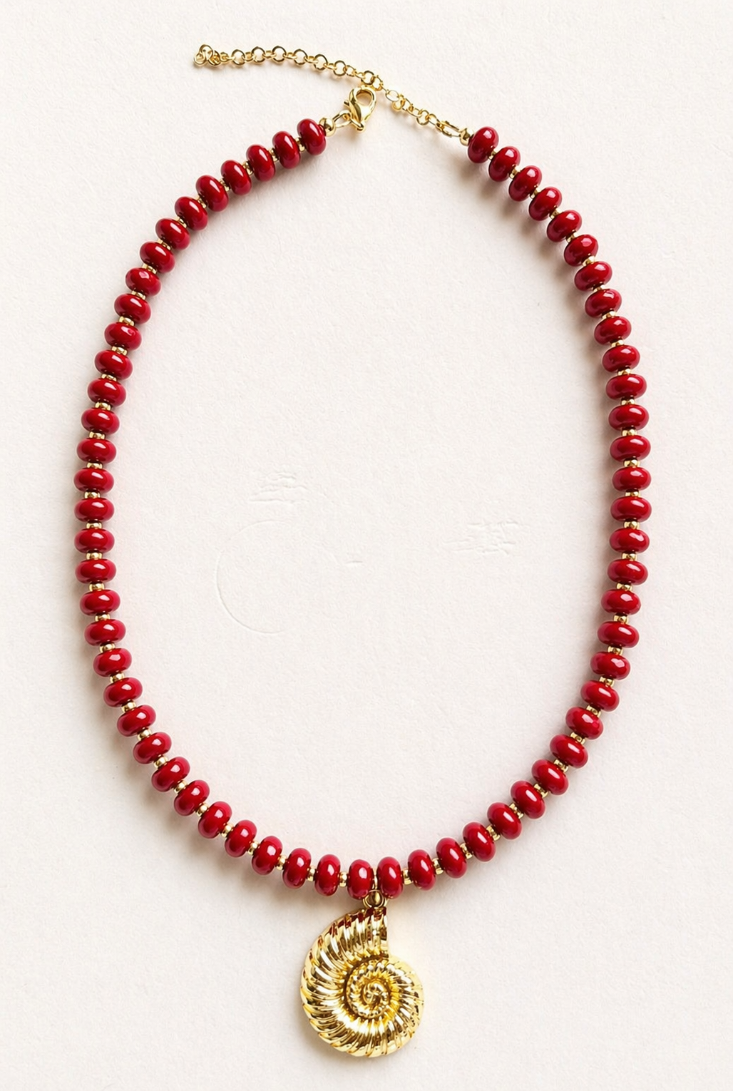 Make a statement with this bold coastal piece, featuring rich crimson beads paired with a striking gold-filled shell pendant. Designed to stand out, this necklace blends vibrant color with elevated seaside details for a look that feels both playful and refined.