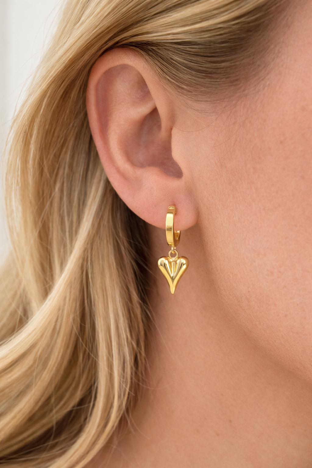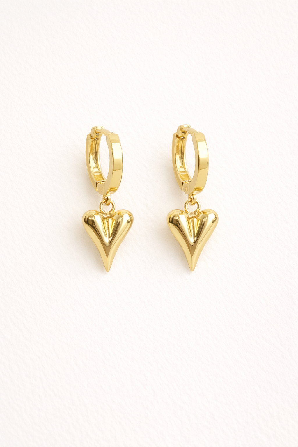 Sweet with just the right amount of shine, the Golden Heart Drop Huggies are an easy everyday statement. A polished heart charm hangs from a classic gold huggie hoop, creating soft movement and a timeless silhouette. Lightweight and effortless, they’re perfect for daily wear but special enough to dress up.
