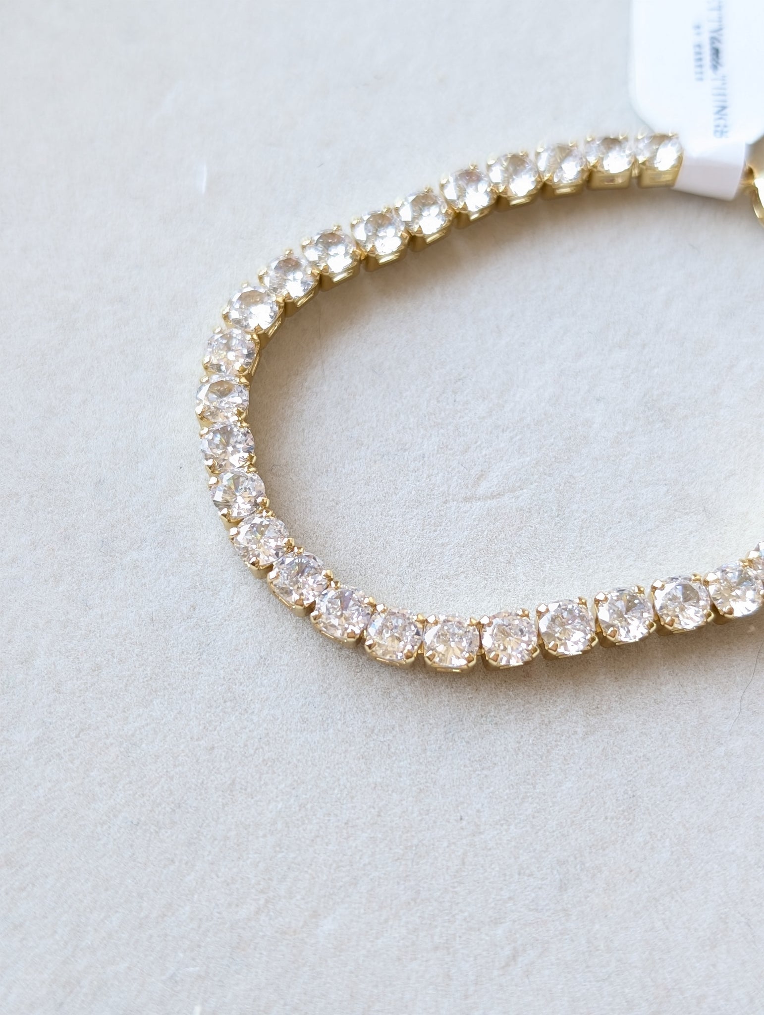 Timeless sparkle, effortless elegance. The Everly Tennis Bracelet features brilliant round-cut cubic zirconia set in gold-filled prongs for a radiant, polished look. Measures 7" with a 2" extender for the perfect fit — a classic piece you’ll reach for again and again.