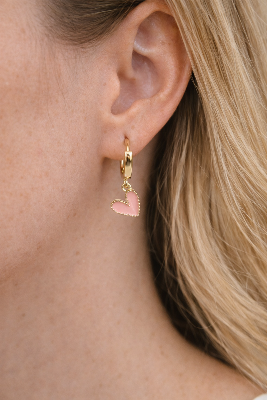 A classic everyday huggie finished with a delicate heart charm. Lightweight and easy to wear, these earrings add a subtle pop of color and pair effortlessly with your everyday favorites.