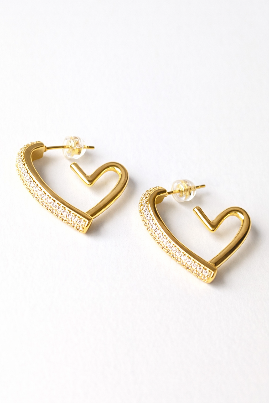 A modern take on a classic heart silhouette. These gold filled pavé heart earrings make a statement with their open design and soft sparkle, while still feeling lightweight and wearable. Bold enough to stand alone, effortless enough for everyday styling.